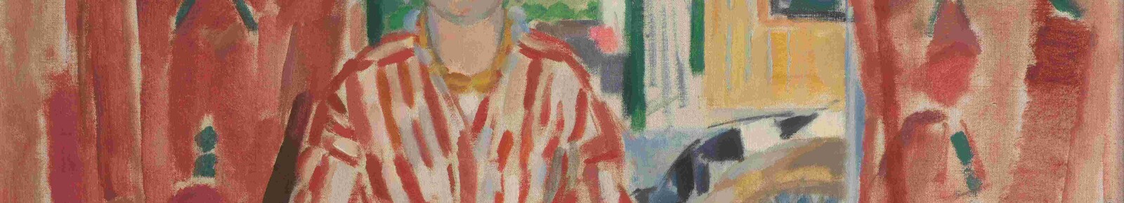 Une femme vêtue d’une robe singulière à rayures rouges et blanches se tient entre des rideaux rouges. Le soleil entre par les fenêtres ouvertes. Son regard est vif et ses joues rosies. C'est l'été 1913 et Rik Wouters capture son éternelle muse Nel sur la toile avec des coups de crayon ciblés. Il s'agit de la pièce la plus emblématique de l'œuvre de l'artiste Rik Wouters (1882-1916).